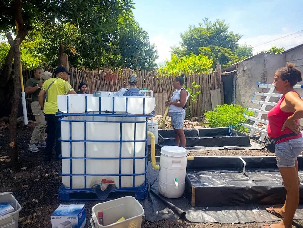 En La Jagua del Pilar se entregaron los últimos 12 sistemas familiares, alcanzando un total de 30 unidades distribuidas en sectores como San Benito 1, San Benito 2, Tranquilidad y Paraíso. Las familias participaron en una segunda jornada formativa sobre calidad del agua y gestión energética, mientras el sistema demostrativo inició producción con tilapia, cachama y hortalizas. Además, voluntarios internacionales apoyaron la creación de una aplicación digital comunitaria para registrar y monitorear parámetros básicos de los sistemas.