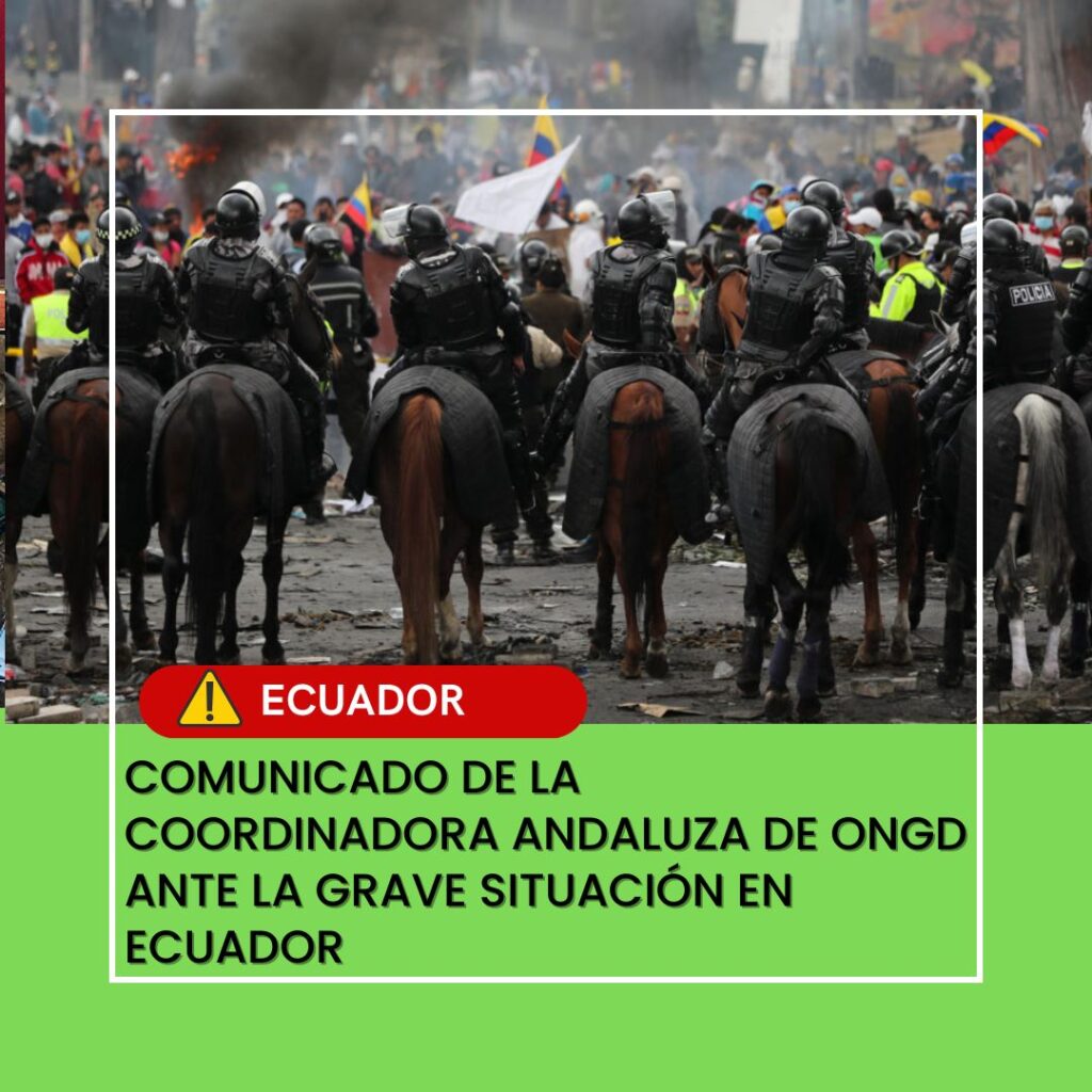 Desde la Coordinadora Andaluza de ONG de Desarrollo queremos expresar nuestra profunda preocupación ante la grave crisis política y social que atraviesa Ecuador. En las últimas semanas, hemos asistido a una alarmante escalada de violencia institucional que vulnera derechos fundamentales, criminaliza la protesta social y amenaza la vida de comunidades históricamente marginadas.